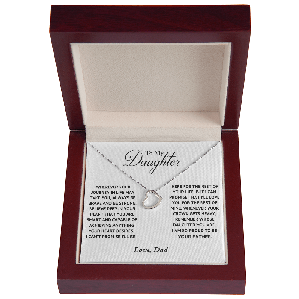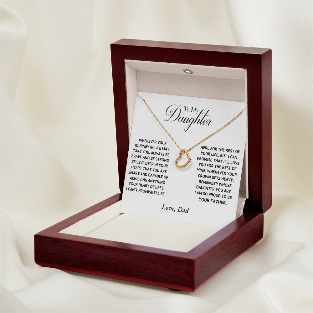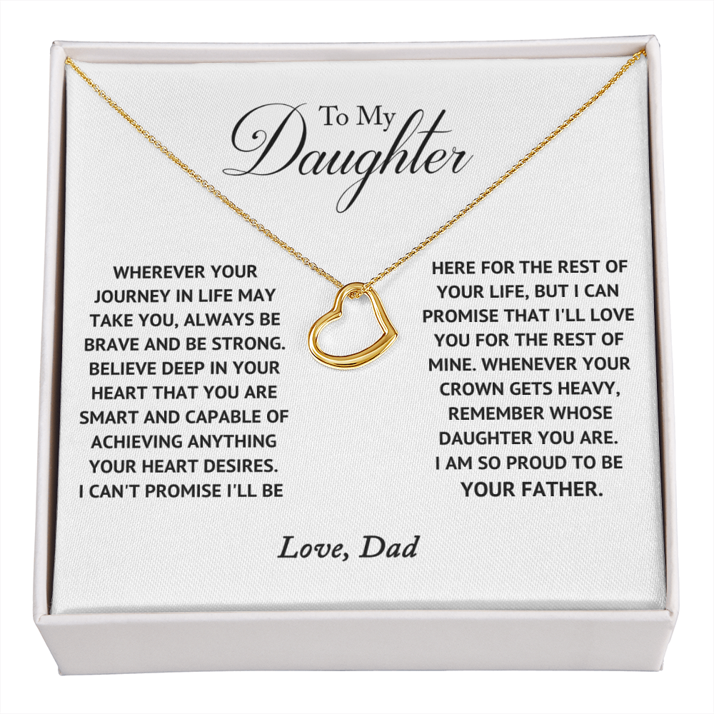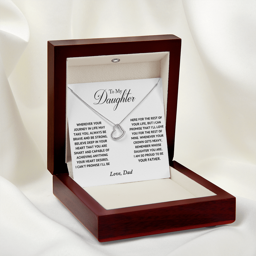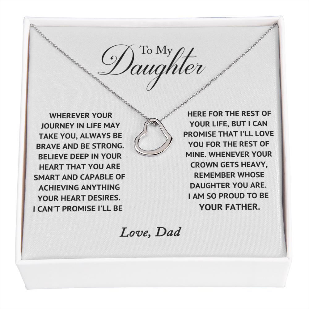 Imagine her delight when she sees this beautiful Delicate Heart Necklace, lovingly crafted in sterling silver and dipped in 14k white gold or 18k yellow gold for added luxury. This piece is pure elegance wrapped up in timeless simplicity. Trends may come and go, but this piece will last a lifetime with its classic subtle beauty.