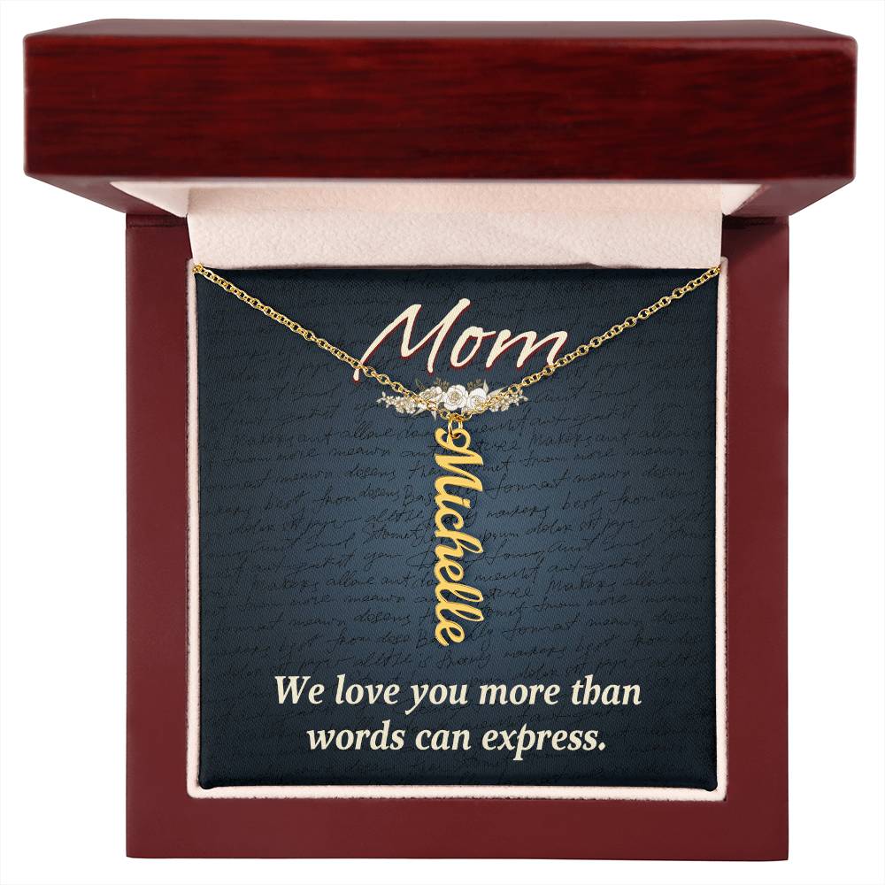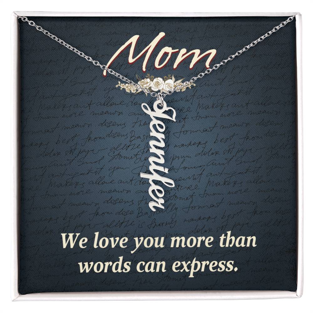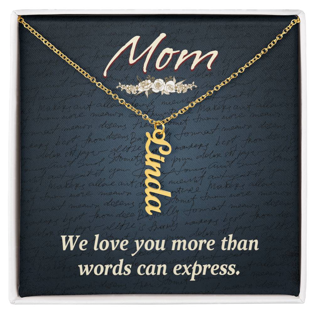 Give your special someone a custom vertical necklace made just for them! Our Personalized Vertical Name Necklace is the perfect gift for your loved ones and will become a versatile accessory for any occasion. From a heart-warming holiday present, anniversary or birthday gift, or just because, this unique necklace adds a trendy touch to any outfit.