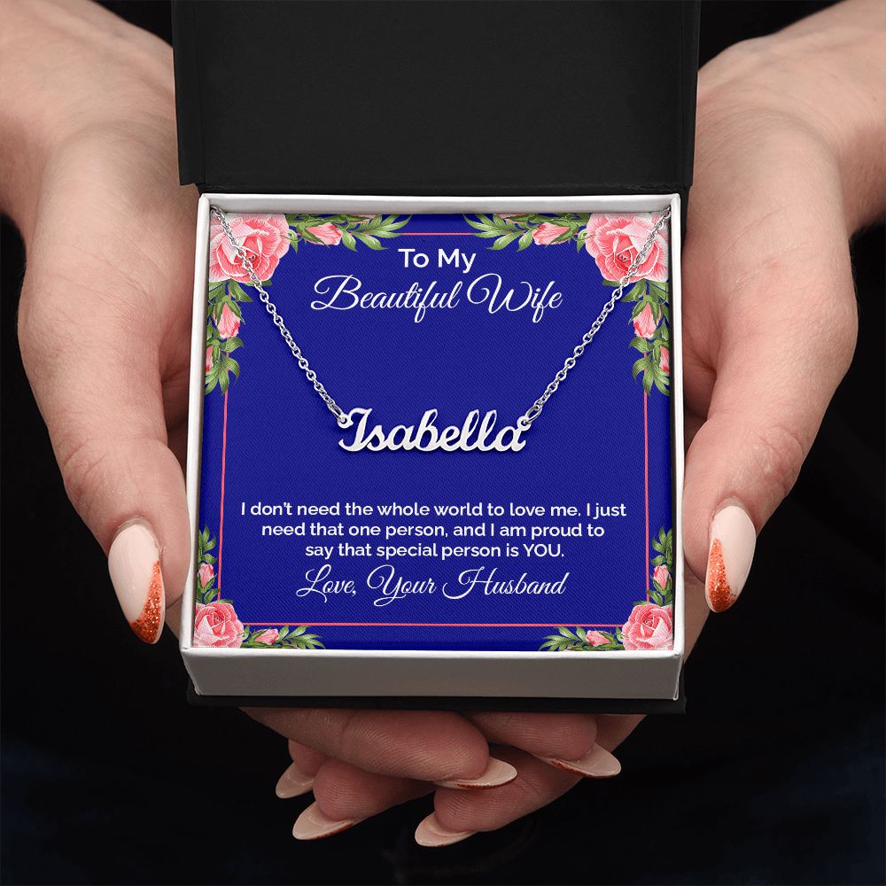 This stylish necklace features a cursive name design suspended on an 16”-18” adjustable cable chain, making it both personal and beautiful! Your necklace will be custom made upon ordering in the name or word of your choice, with up to 10 characters. It's a gift that they will surely want to keep close to their heart forever!