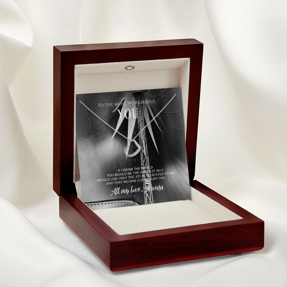 Your necklace is lovingly packaged in a complimentary two-tone box for easy gifting. Elevate the presentation by upgrading to the mahogany style luxury box, which features a brilliant LED spotlight.