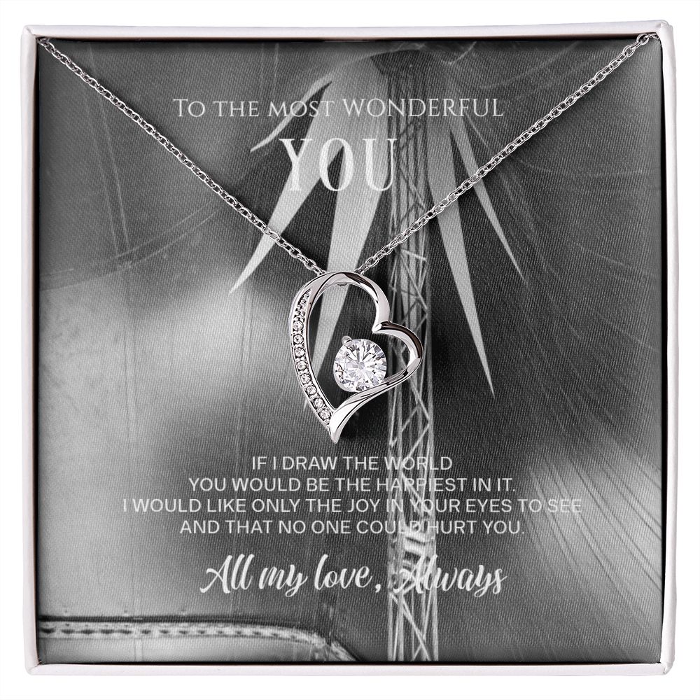 The dazzling Forever Love Necklace is sure to make her heart melt! This necklace features a stunning 6.5mm CZ crystal surrounded by a polished heart pendant embellished with smaller crystals to add extra sparkle and shine. Beautifully crafted with either a white gold or yellow gold finish, be sure to give her a classic gift she can enjoy everyday.