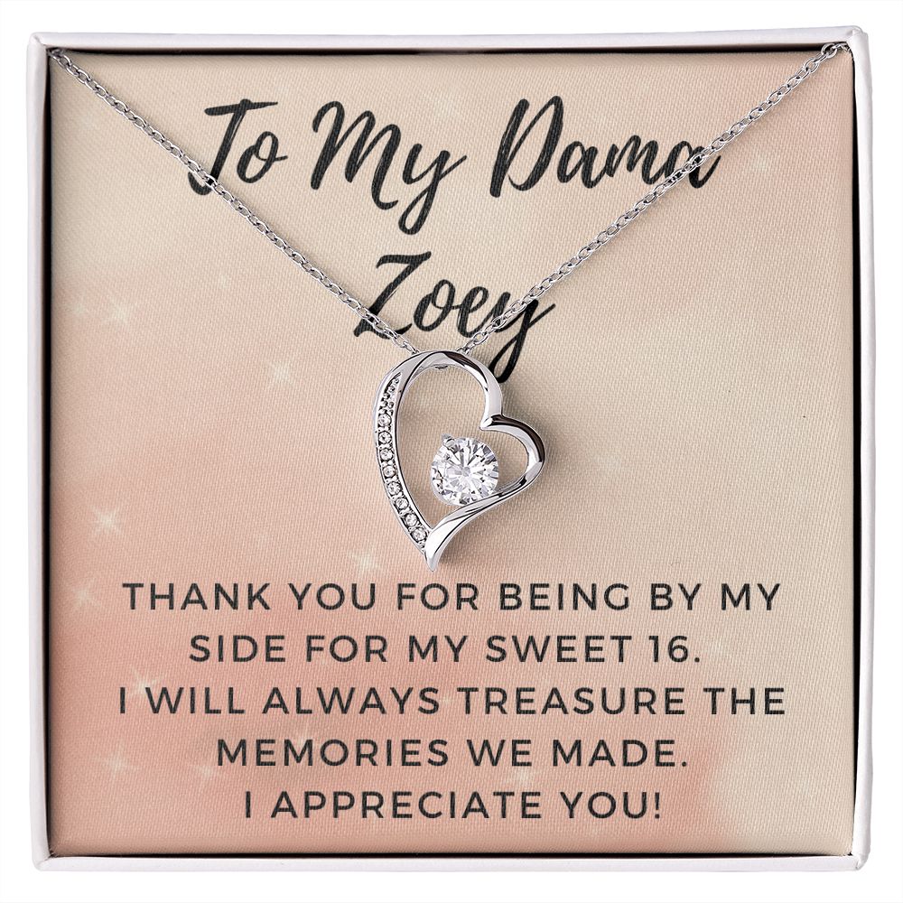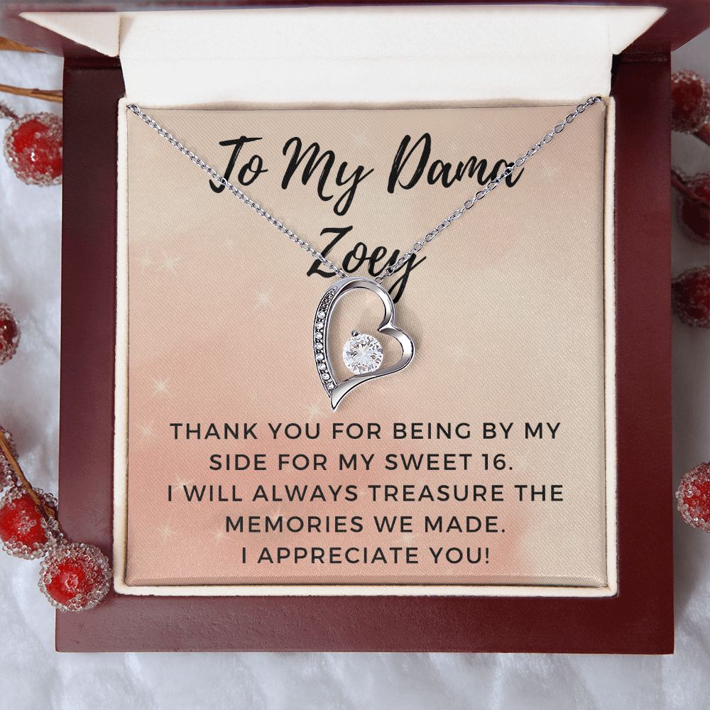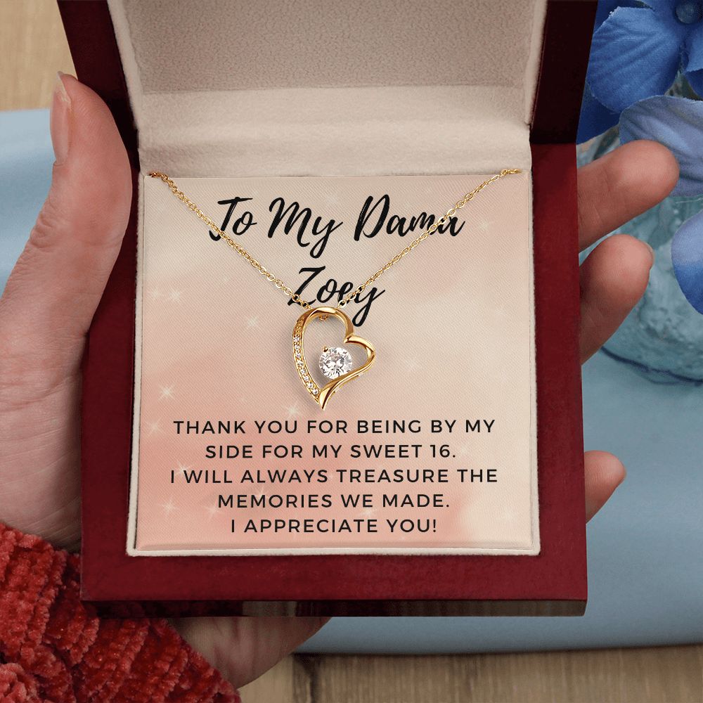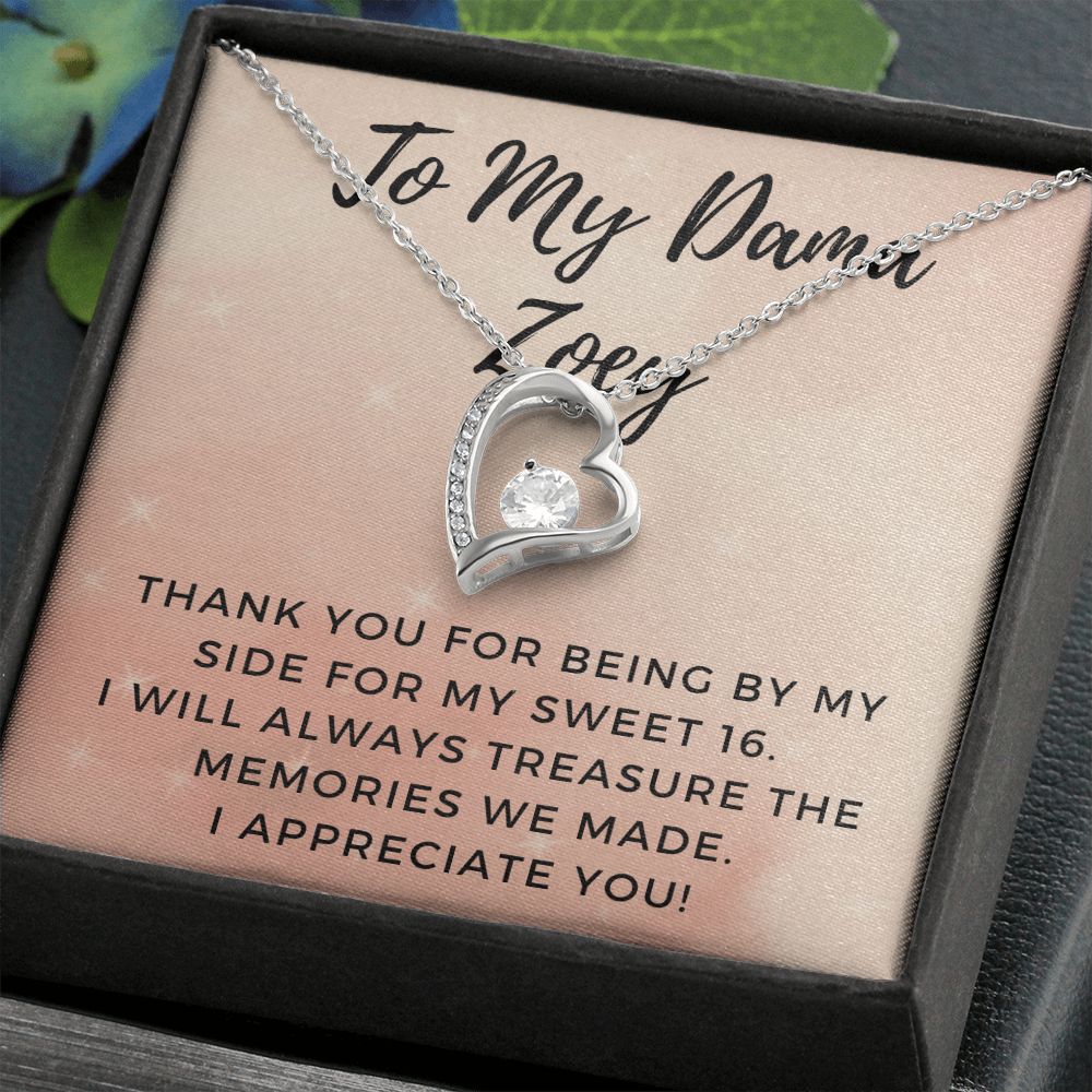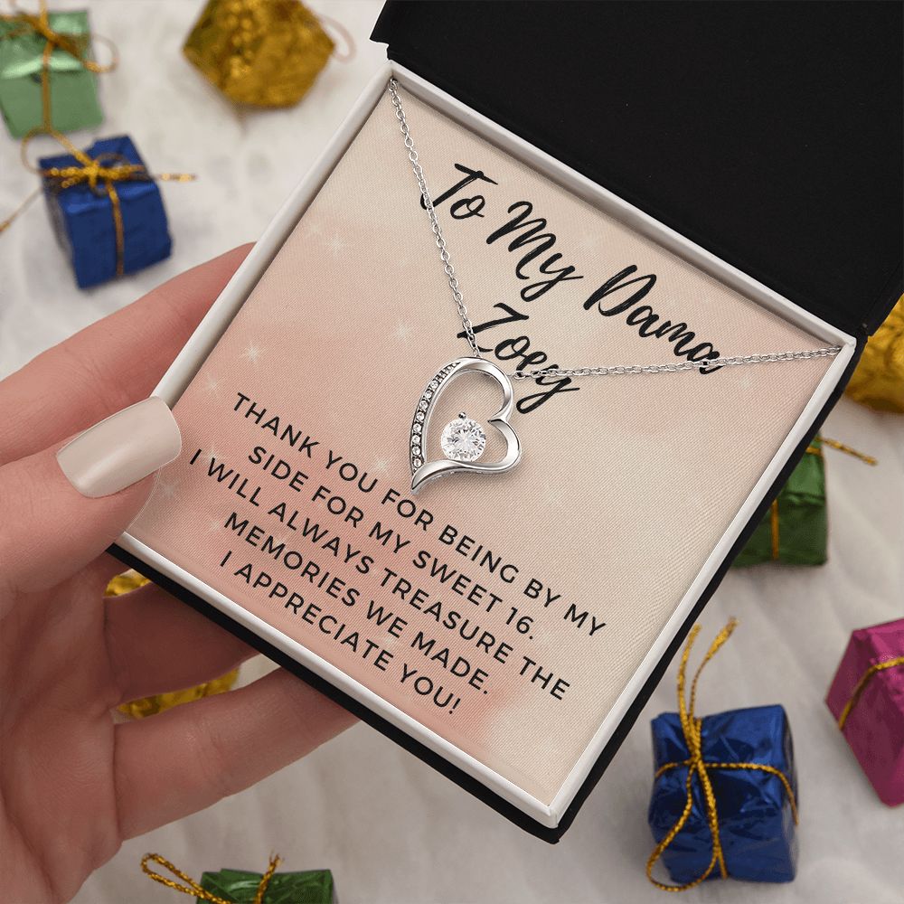 The dazzling Forever Love Necklace is sure to make her heart melt! This necklace features a stunning 6.5mm CZ crystal surrounded by a polished heart pendant embellished with smaller crystals to add extra sparkle and shine. Beautifully crafted with either a white gold or yellow gold finish, be sure to give her a classic gift she can enjoy everyday.