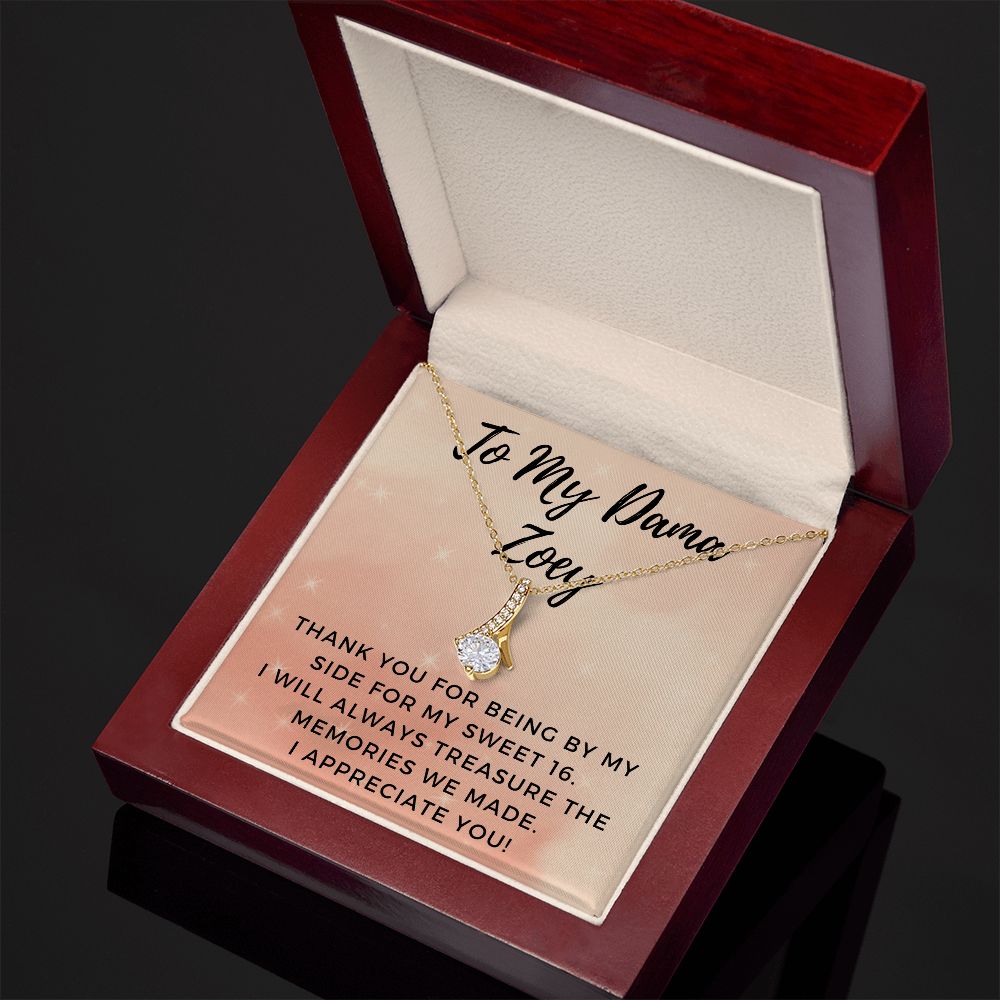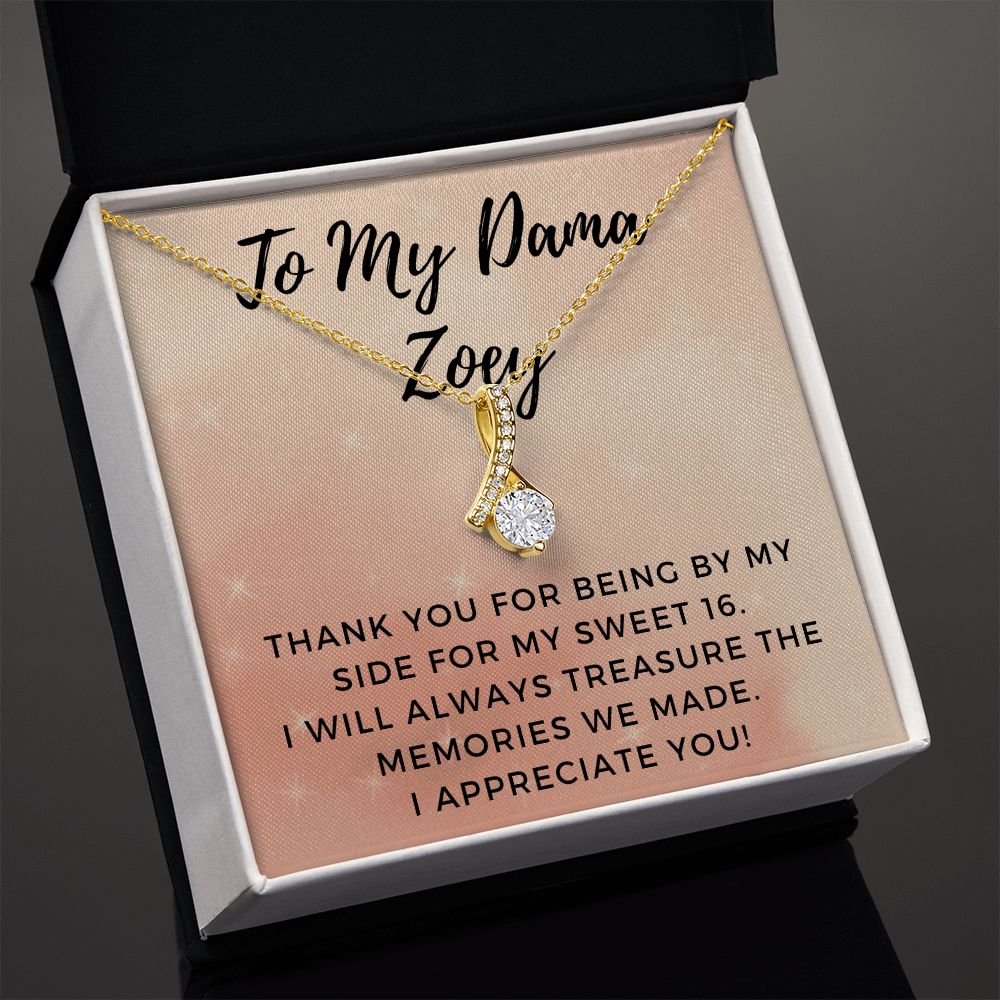 Imagine her reaction when she opens this stunning gift! The Alluring Beauty necklace features a petite ribbon shaped pendant that is sure to dazzle your special someone. Whether it's a birthday or anniversary, make sure to get her a gift she will love for years to come.