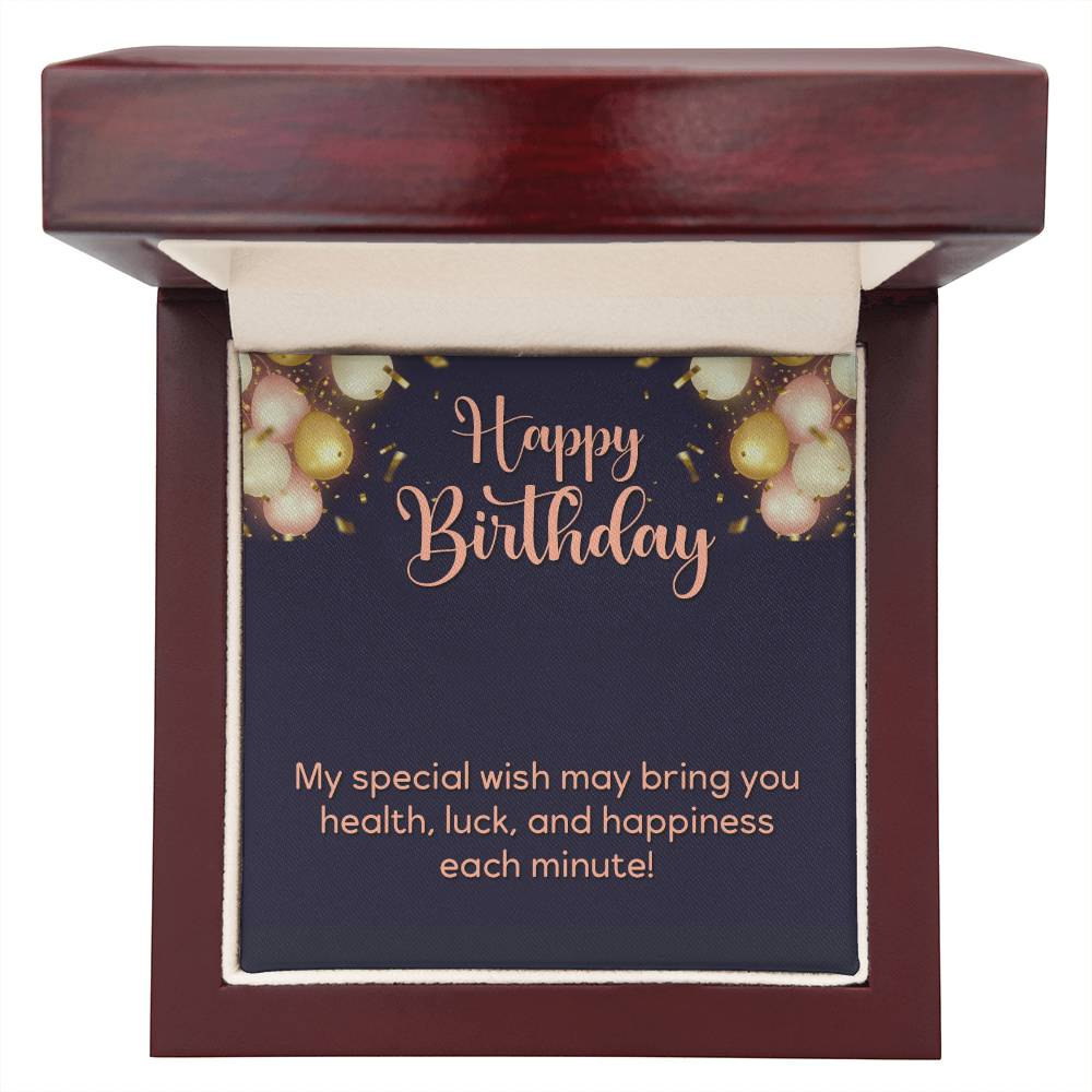 Your piece is lovingly packaged in a complimentary soft touch box for easy gifting. Elevate your presentation by upgrading to the mahogany style luxury box, which features a brilliant LED spotlight.