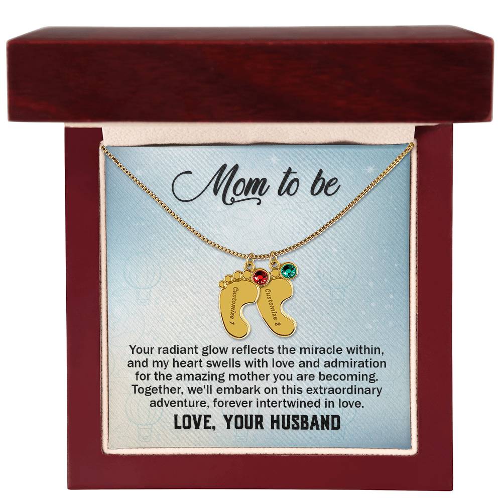 Celebrate the arrival of a newborn or cherish a precious memory with our Custom Baby Feet Necklace with Birthstone. Personalize your gift by engraving a name of your choice onto the pendant and choosing a crystal that correlates with the baby's birth month. And by picking multiple pendants, a custom present like this is perfect for moms and grandmothers with big families. This is a one-of-a-kind keepsake that will be treasured for a lifetime!