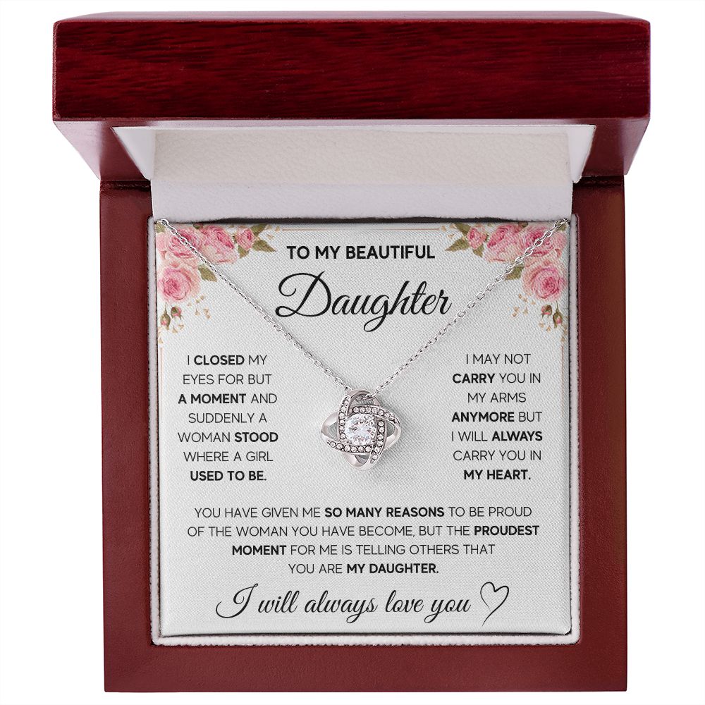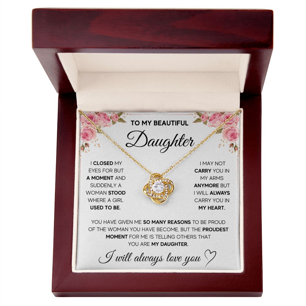 Imagine her reaction receiving this beautiful Love Knot Necklace. Representing an unbreakable bond between two souls, this piece features a beautiful pendant embellished with premium cubic zirconia crystals. Surprise your loved one with this gorgeous gift today!