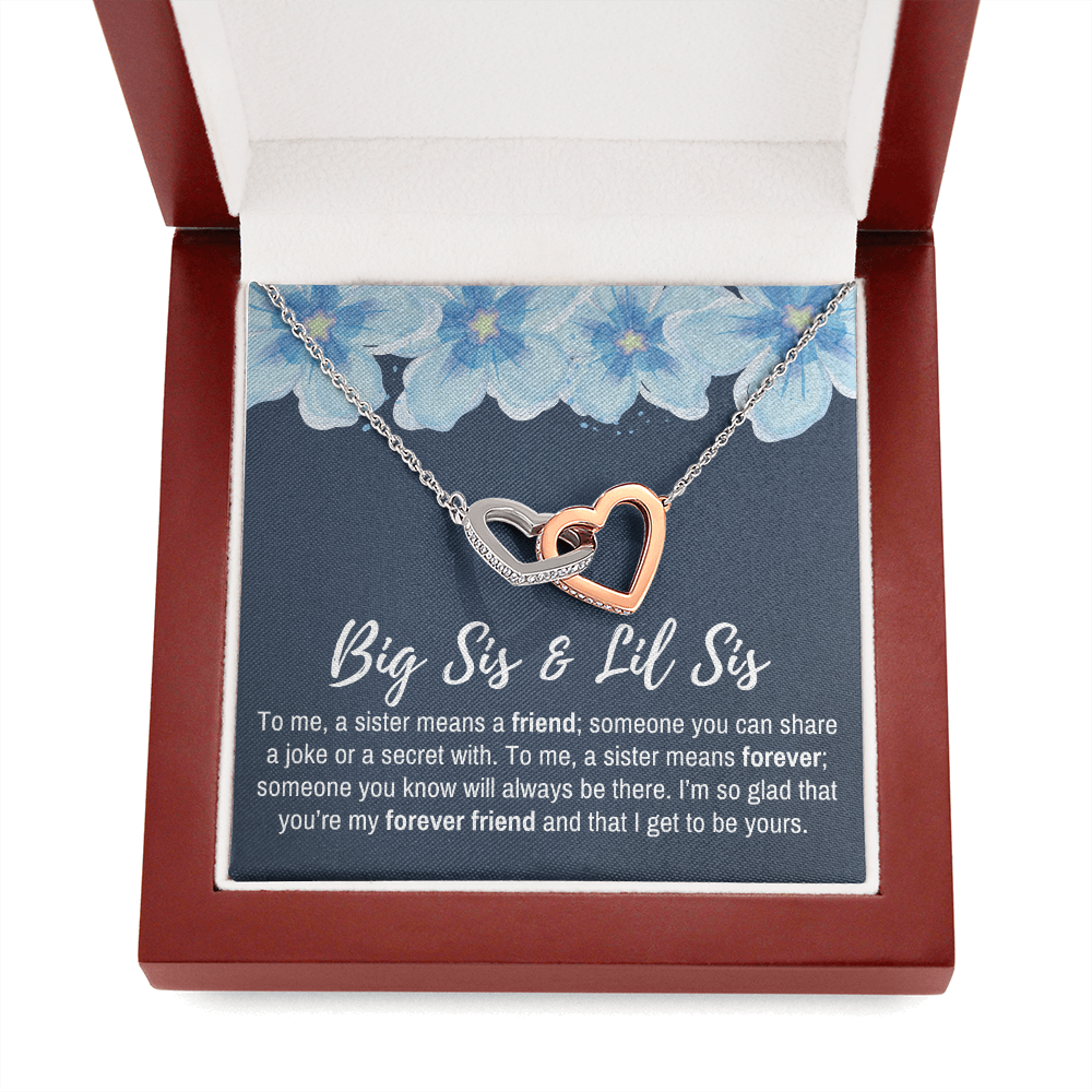 Two hearts embellished with Cubic Zirconia stones, interlocked together as a symbol of never-ending love. Made with high quality polished surgical steel. Cable chain measures 18 inches with a 4 inch extension, and fastens with a lobster clasp.