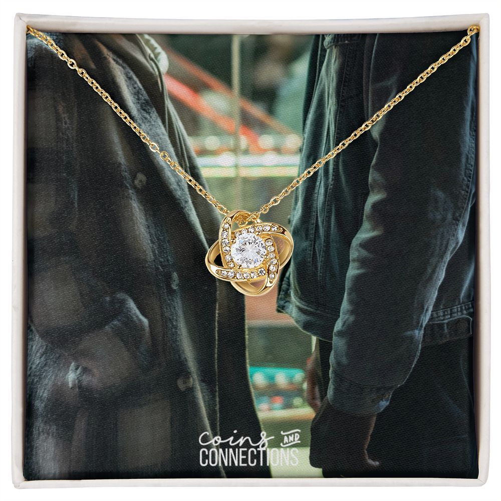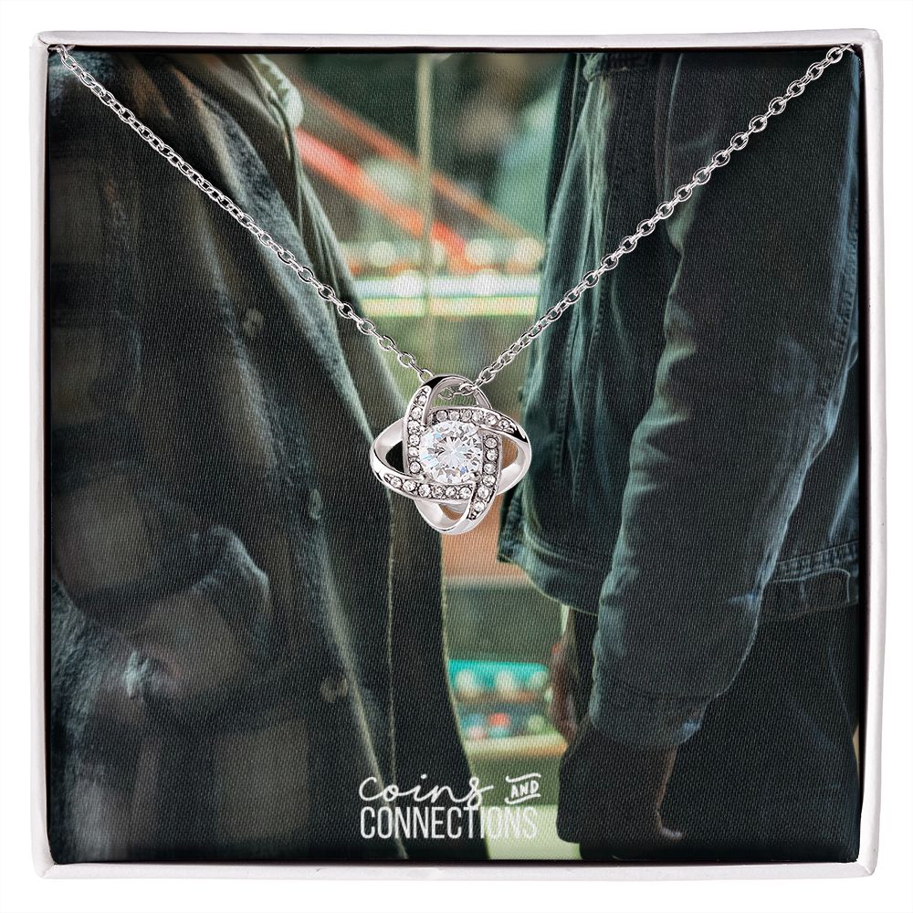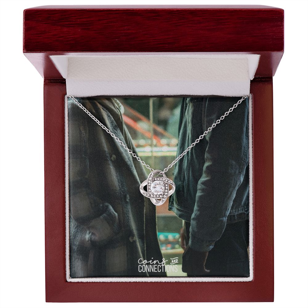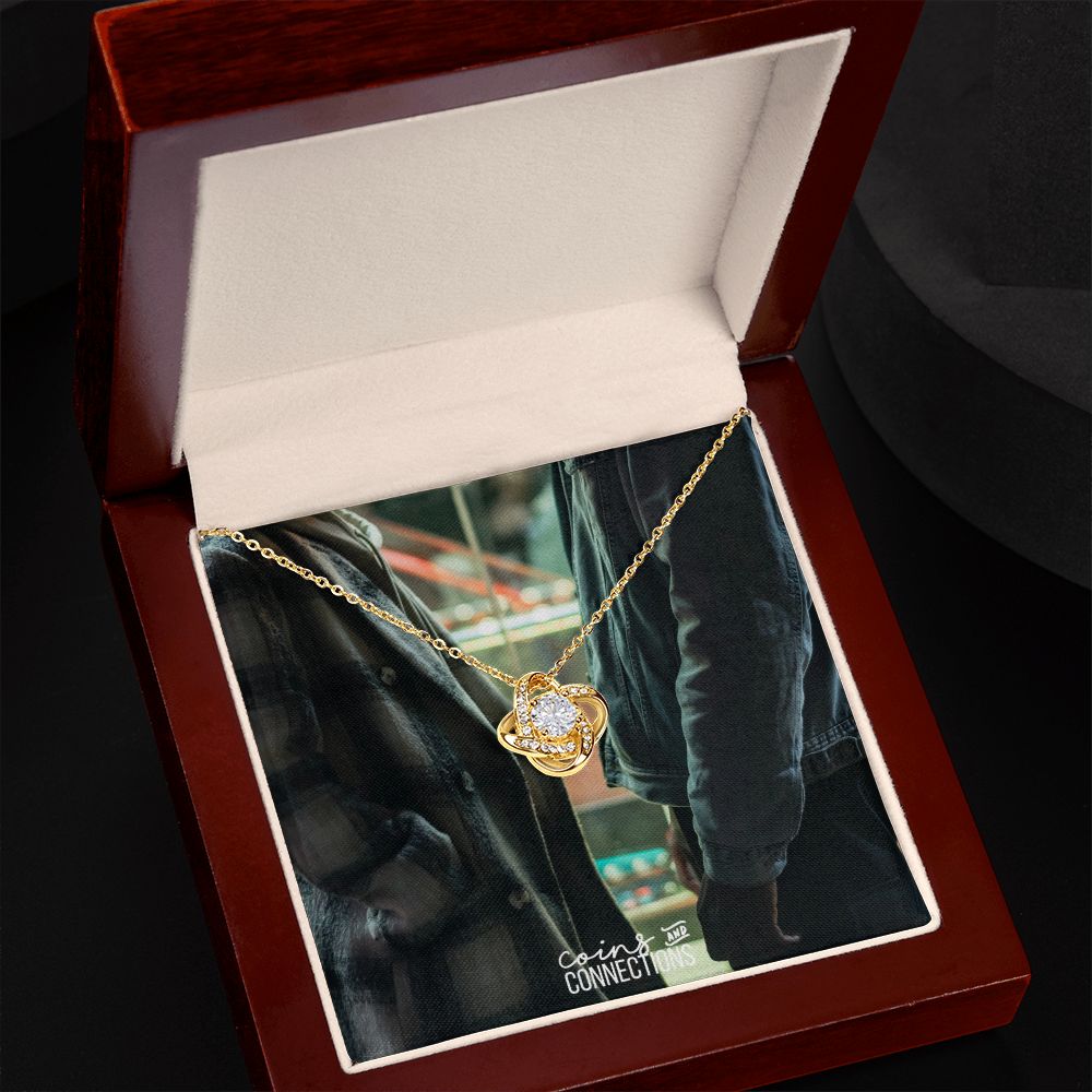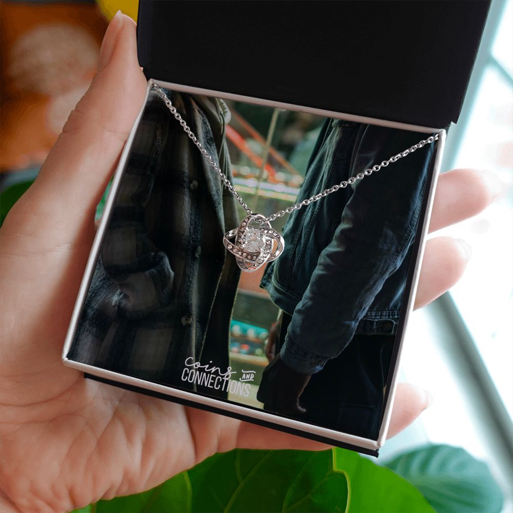 Imagine her reaction receiving this beautiful Love Knot Necklace. Representing an unbreakable bond between two souls, this piece features a beautiful pendant embellished with premium cubic zirconia crystals. Surprise your loved one with this gorgeous gift today!