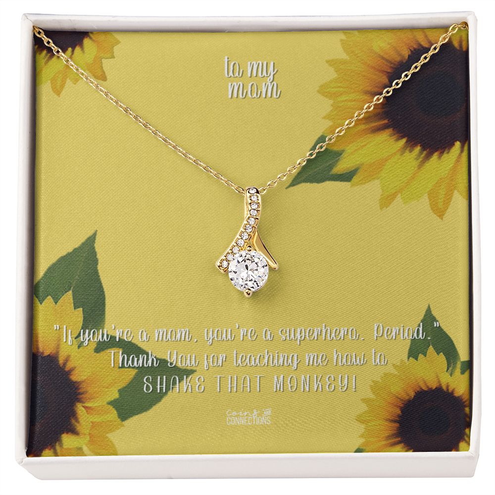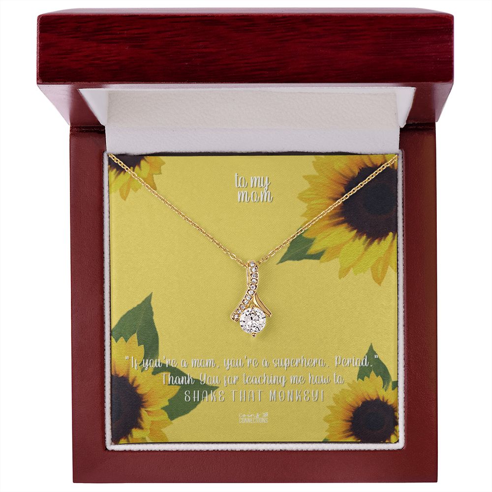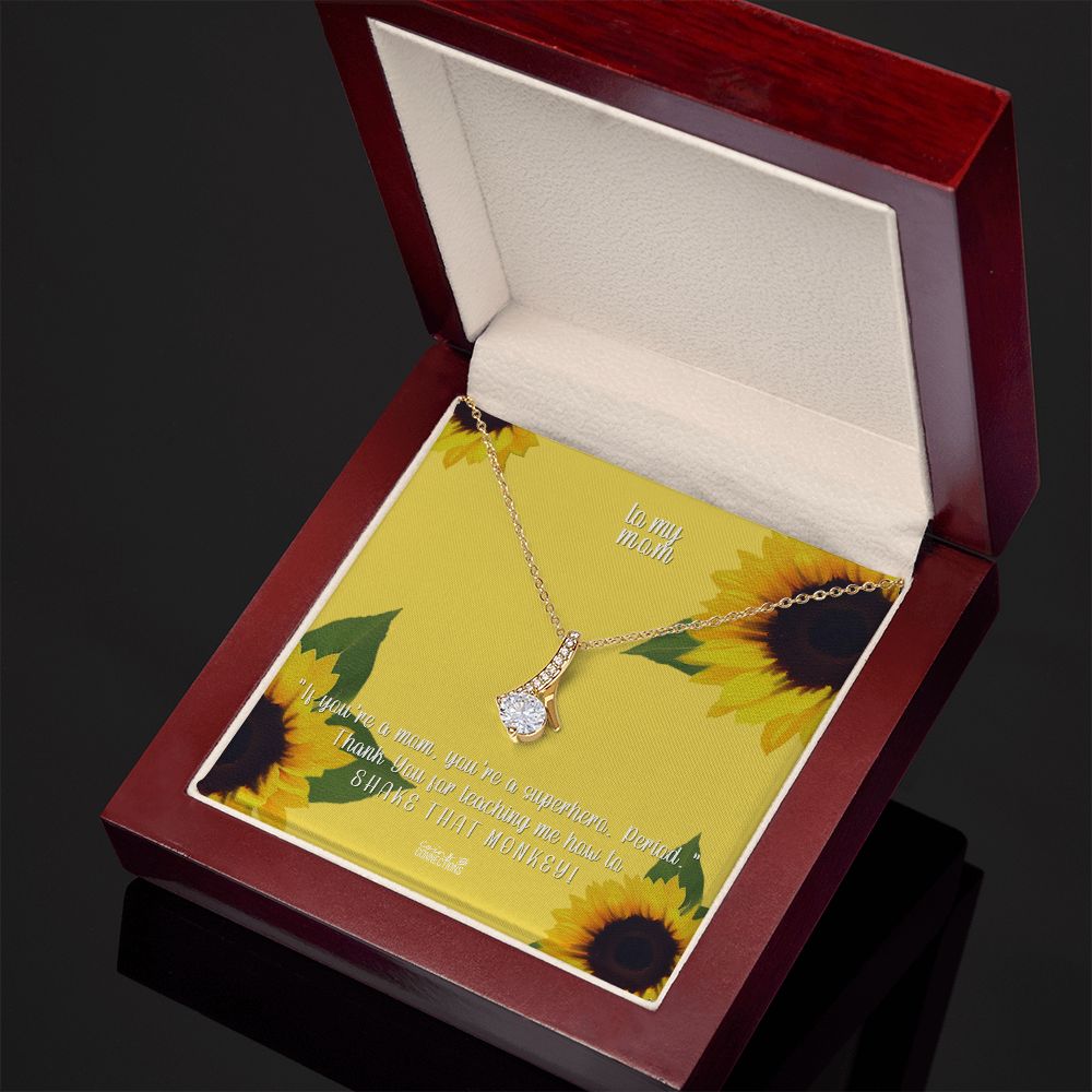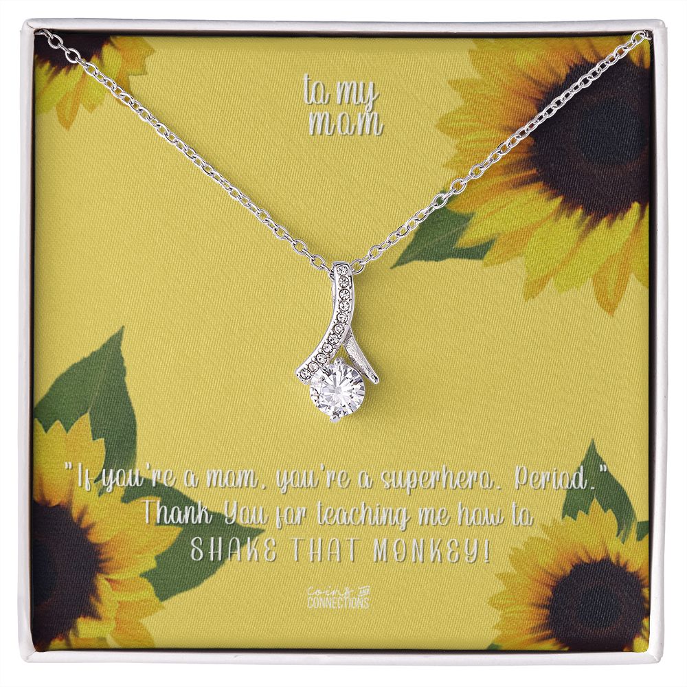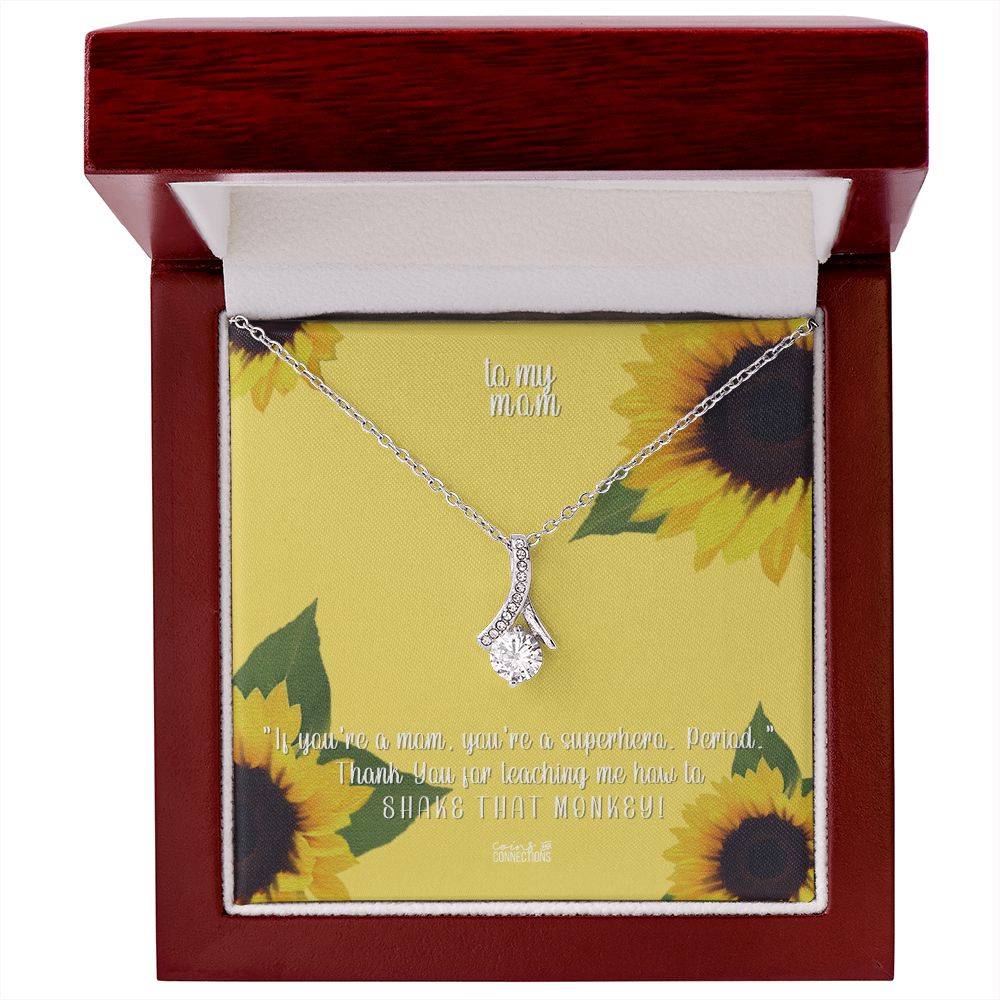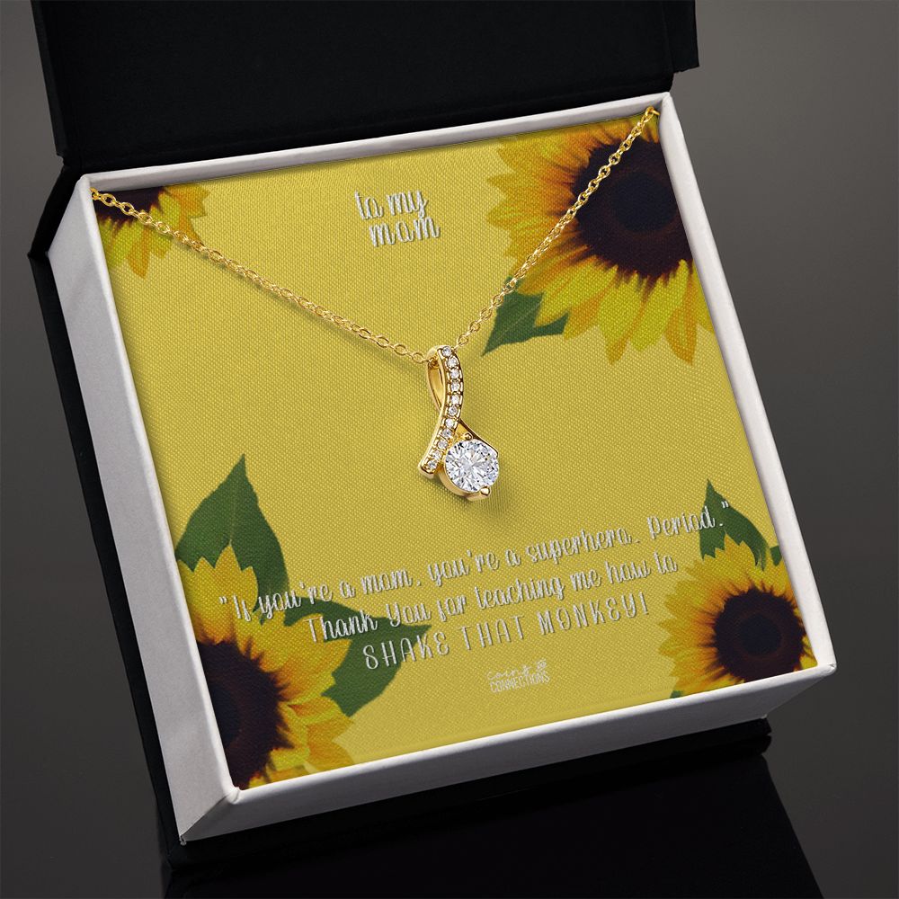 Imagine her reaction when she opens this stunning gift! The Alluring Beauty necklace features a petite ribbon shaped pendant that is sure to dazzle your special someone. Whether it's a birthday or anniversary, make sure to get her a gift she will love for years to come.