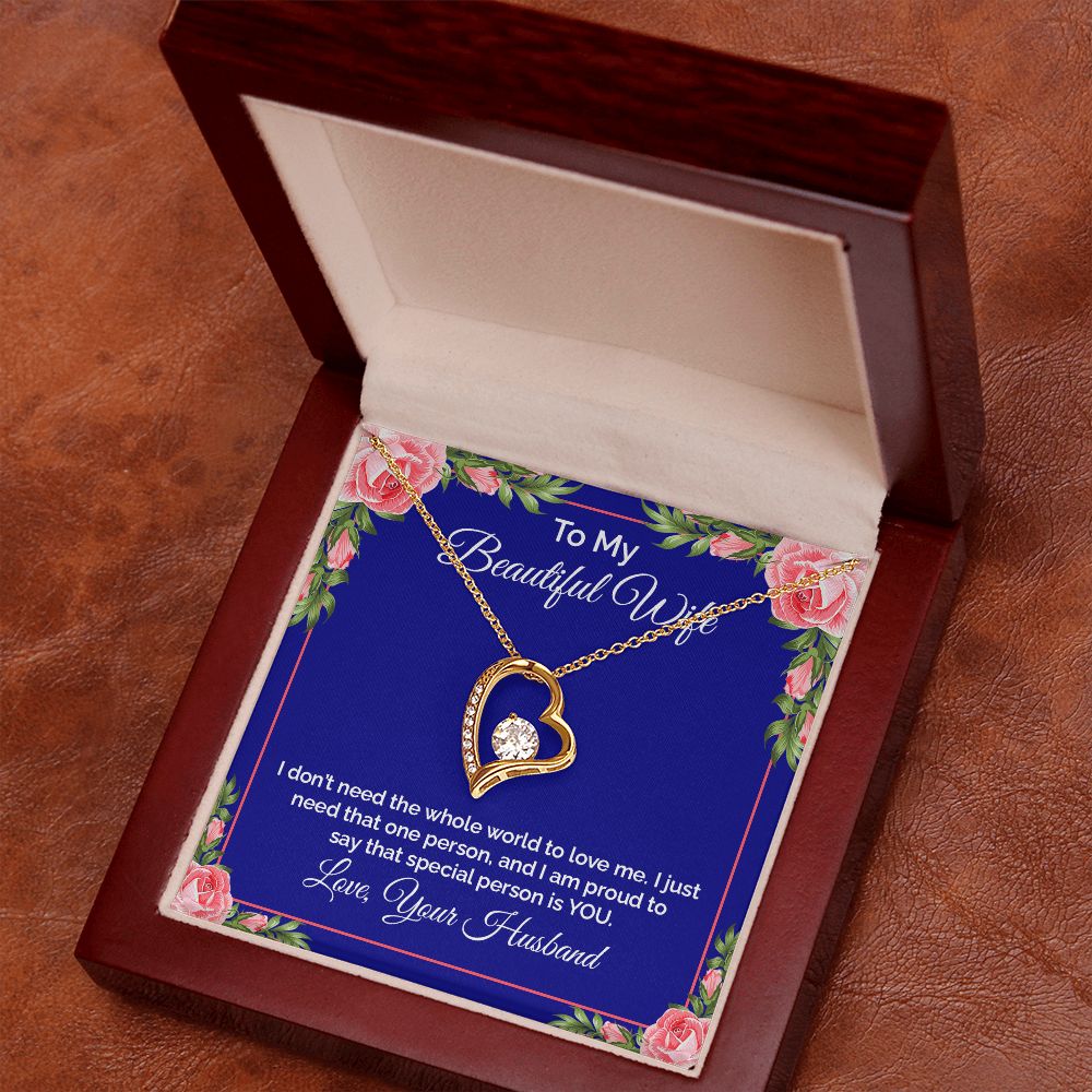 The dazzling Forever Love Necklace is sure to make her heart melt! This necklace features a stunning 6.5mm CZ crystal surrounded by a polished heart pendant embellished with smaller crystals to add extra sparkle and shine. Beautifully crafted with either a white gold or yellow gold finish, be sure to give her a classic gift she can enjoy everyday.